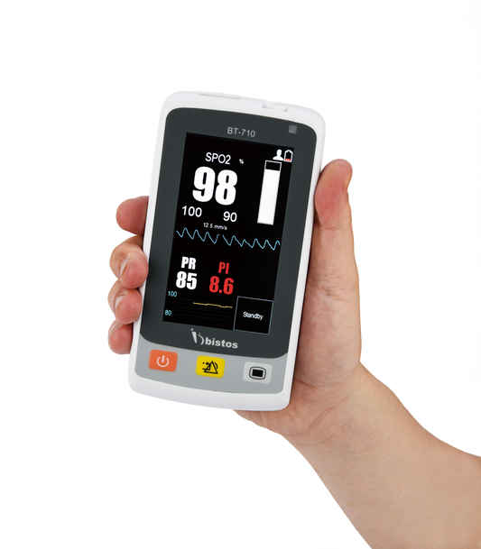 The bistos BT-710 pulse oximeter is easily operated with the touchscreen display. The alarm limits and volume can be individually set by the user, to match the monitoring situation. The BT-710 it comes equipped with a lithium-ion battery that provides up to 8 hours of...