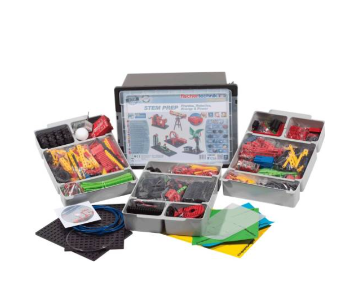 The new fischertechnik Education STEM PREP set enables students to understand and explore many essential aspects of technology, with a focus on physics, robotics, energy, and power. It includes parts, along with step-by-step pictorial instructions for building each of the models found in the following 9 fischertechnik sets